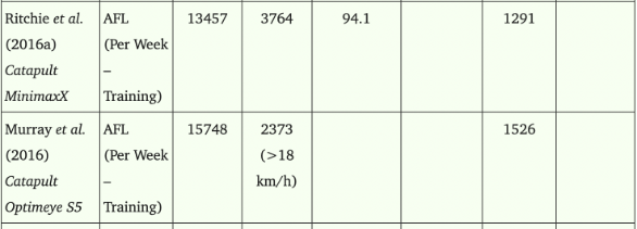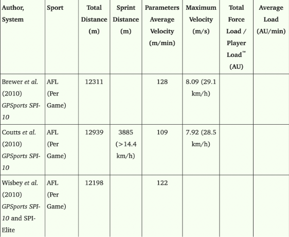 Melbourne based company Catapult revolutionised sports technology, pioneering wearable GPS trackers for athletes. They measure metrics such as speed, positional data, acceleration and more. A study conducted from 2000 to 2017 by the National Library of Medicine in America discovered the importance of these devices to meet the rising demand of team training improvements and to observe the internal and external trends of individual player performances. However, they also mention the restricted utility of these devices in areas with limited satellite coverage including indoor sports as most data recorded is from outdoor sports including AFL. Fig 2.1 displays data recorded from GPS trackers, however not all aspects of this specific study have been recorded revealing a gap in these studies. Fig 2.2 shows later recorded data in 2016 revealing more data recorded, leading to an improvement in GPS tracker’s capabilities.